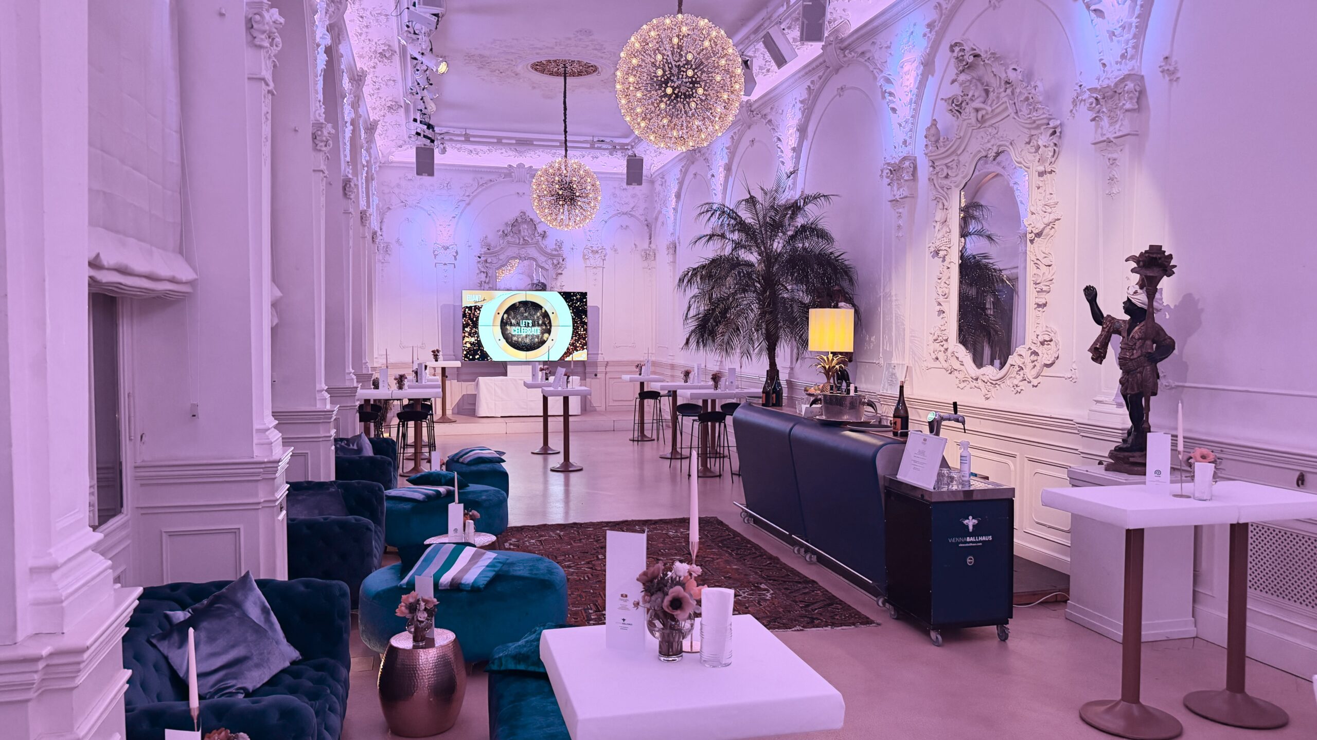 VIENNABallhaus was a fantastic venue to celebrate our company’s anniversary! The venue itself is amazing. The staff were exceptional, both the event- and catering planner (hannahs.at) who provided support throughout and the whole team on the day who made sure it all went perfectly. The food and wine was fabulous, and a real highlight was the beautiful decoration of the VIENNABallhaus. We loved every minute of the event, as did all of our guests, thanks in no small part to such an amazing venue and team.