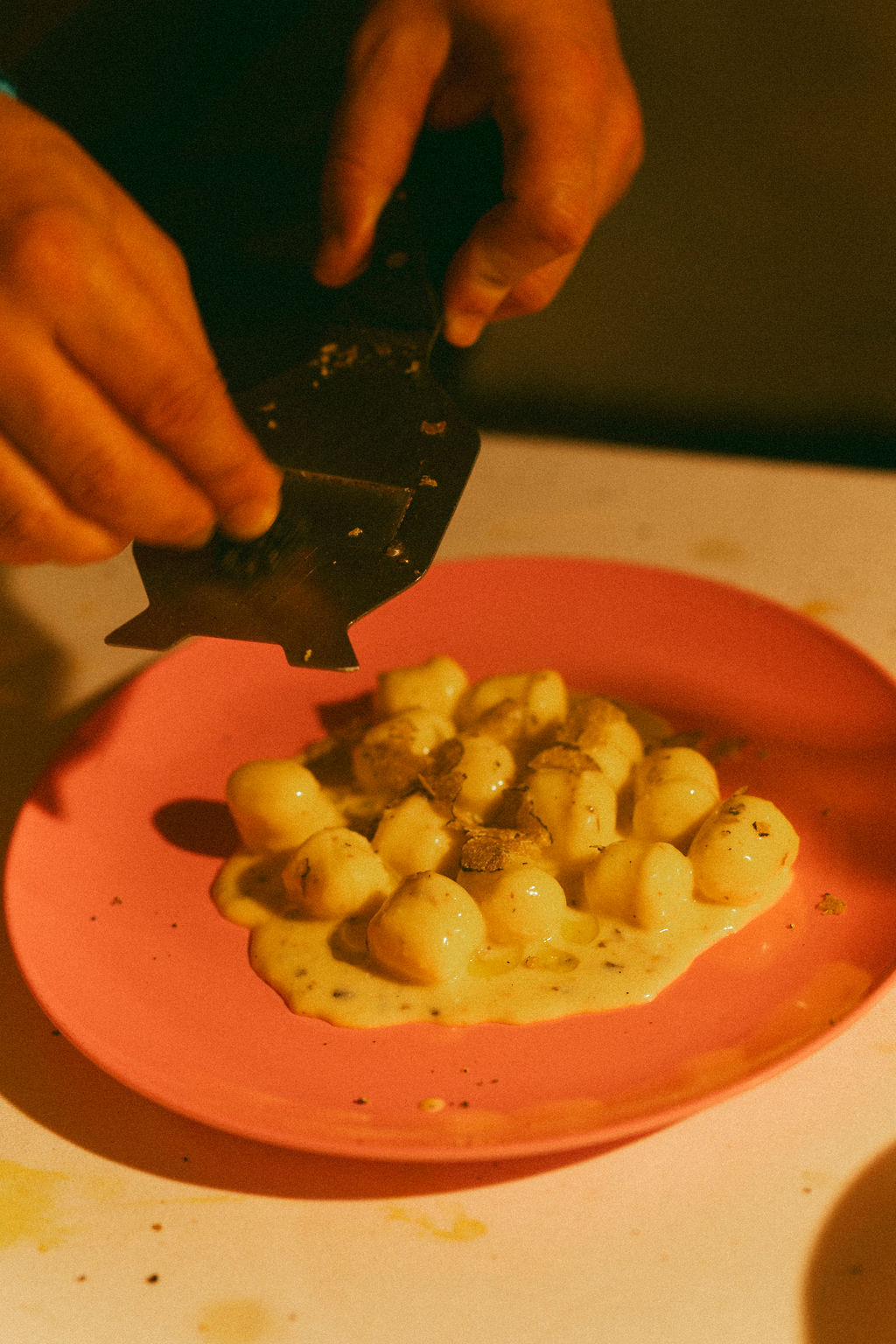 Tono Soravia favours game and forest, which of course perfectly matches the truffle theme. In Tartufo Totale, the famous truffle porchetta meets the spicy Berkel again!